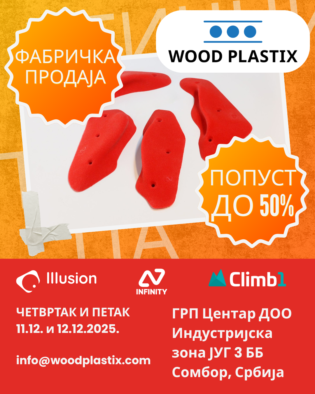 Брендови које имамо у понуди су Infinity, Climb1, ClimbWell и Illusion, уз још понеке артикле које можете наћи међу робом друге класе. Дођите да се дружимо! Дочекајте нову, 2026. годину опремљени новим елементима за Ваше пењачке зидове!